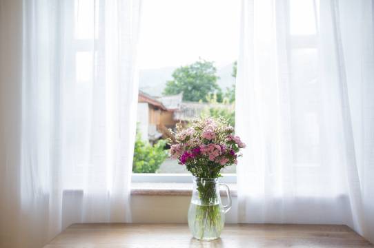 公区布置得好有法式氛围,蕾丝窗帘、复古花瓶,还有满桌的鲜花,坐下来喝杯茶,仿佛置身19世纪的欧洲庄园。房间更是戳中少女心,碎花抱枕、木质家具,推开窗就是蓝天和古镇屋顶,晚上伴着花香入睡,幸福感直接拉满✨。