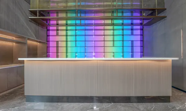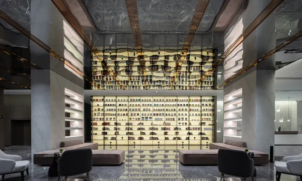 大堂的布局很开阔,简约的立柱和线条感十足的装饰让空间显得格外通透,休息区的座椅选得很有品味,柔软又舒适,逛累了坐下来歇会儿特别惬意。最惊喜的是大堂里的巨型书墙,满满一面墙的书籍陈列得整整齐齐,文艺氛围直接拉满,在商务感里揉进了浓浓的书香气息,细节感绝了。