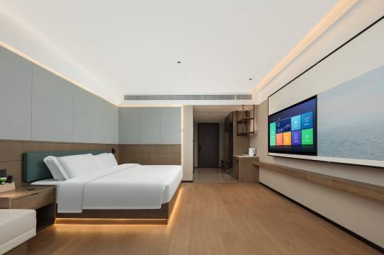 酒店在大路边离高速出口不远,前台小姐姐态度热情,给升级了房型,房间宽敞整洁,床品干净舒适,门口停车方便。