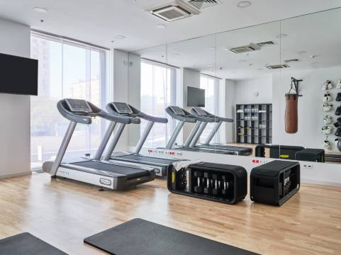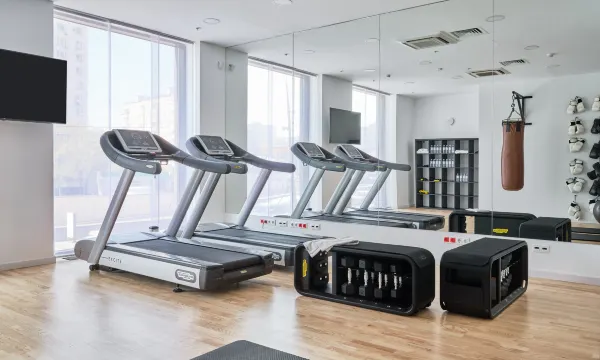 房间比较小,出行比较方便,附近1km以内有地铁站。附近有吃饭和购物的地方。酒店也有一个小小的健身房。
