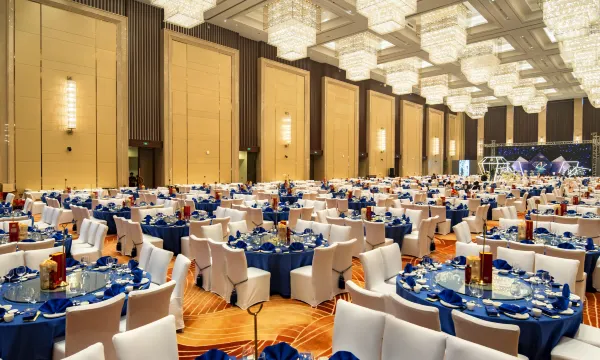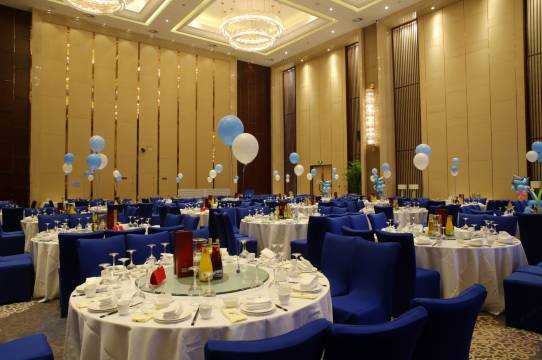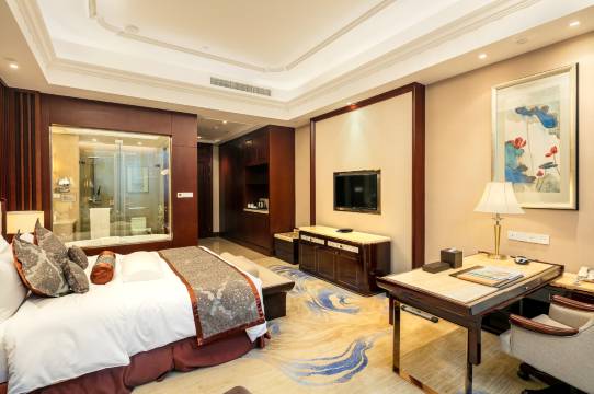 酒店配备全套服务设施,2000平米千人无柱灵动宴会厅以及其它十余个大小不一、设施设备齐全的会议及宴会场地;餐饮设施配备大堂吧、中式茶苑、以及提供纯正中餐的10间私密包厢中餐厅,设有面朝湖30人景观餐饮大包厢,另配套免费设施设备如有线及无线网络、健身房、停车场、室内泳池等,是不可多得的闹市中的桃花源,带给您非同一般的私密奢华新体验。