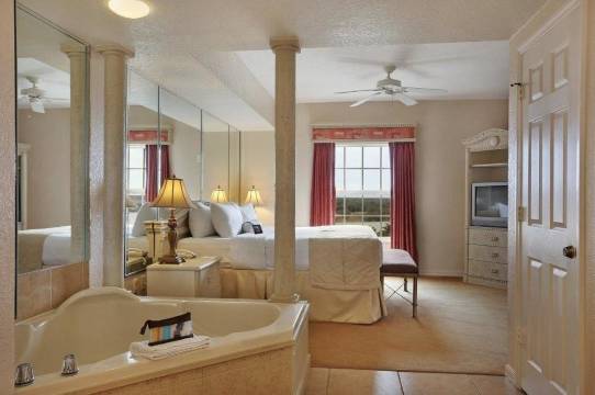 离迪士尼世界20分钟车程,酒店有两张双人床和一张大床,还有一个大浴缸,住得很满意。给前台发信息,服务响应也很快,印象深刻。如果是家庭度假的话,非常推荐。