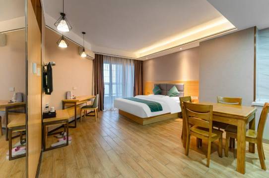 房间比想象中要好,而且地理位置较便利,在路边就很容易找到,晚上高楼层外面的夜景还不错,总之体验感较好。
