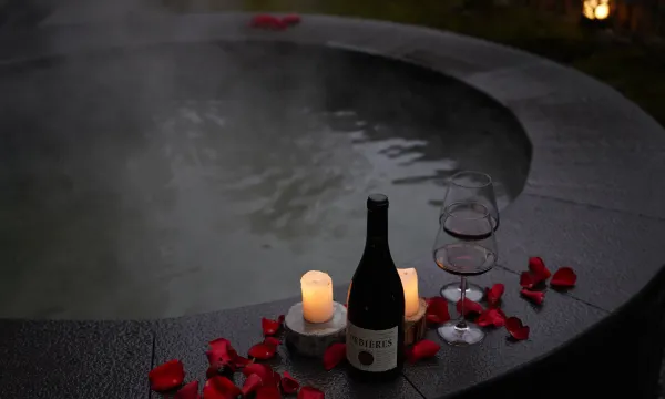 街子古镇上山20分钟左右到酒店,山路道路窄还好来往车辆少;酒店设计不错,颜值在线,房间内泡汤也很舒服,暖气开足不会冷到;酒店工作人员服务都很周到,可以带狗狗一起住真心不错,下午还有观景台可以坐着喝下午茶;我认为唯一需要改善的是卫生间的花洒需要更换了,热水有点小,女生洗长发有点困难