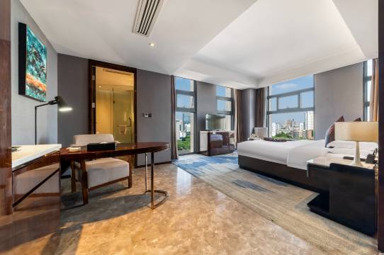 客房格调优雅,格局宽敞通透,装饰和摆设都彰显品味。床榻柔软,床品高级,给你优质的睡眠;宽带使商务和休闲变得轻松。