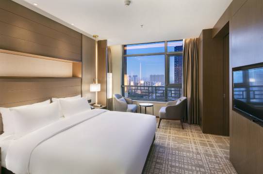 地理位置便利,高铁旁,王府井万达商圈,非常便利,距离人民广场也很近。日常接待朋友经常安排在这里。