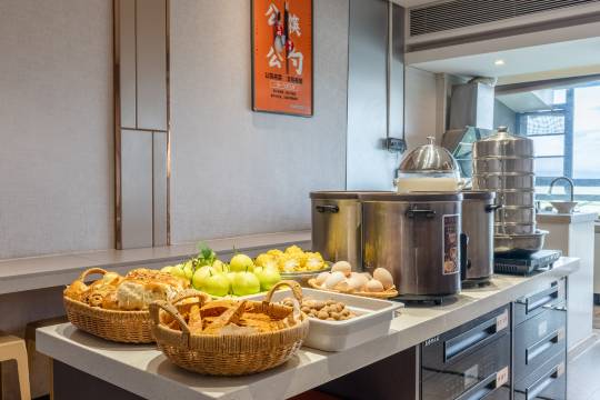 房间干净整洁,配有一次性洗脸巾和牙刷!房间视野好,元宵节入住当晚可以看窗外的烟花,超好看!自助早餐品类较多,味道不错!