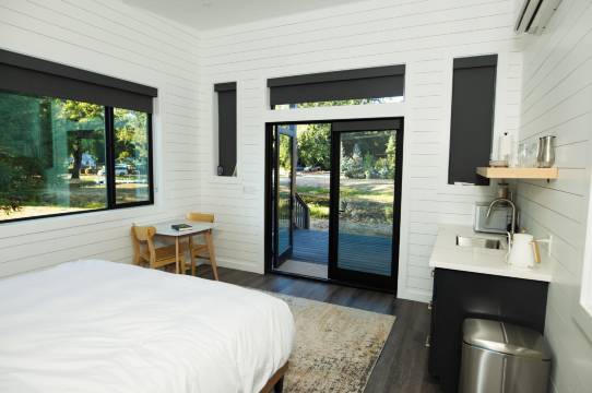 12 间空调客房提供备有炉灶和微波炉的简易厨房;您定能在旅途中找到家的舒适。您的记忆海绵床垫卧床备有高档床上用品。便利设施包括茶具/咖啡用具和吊扇。