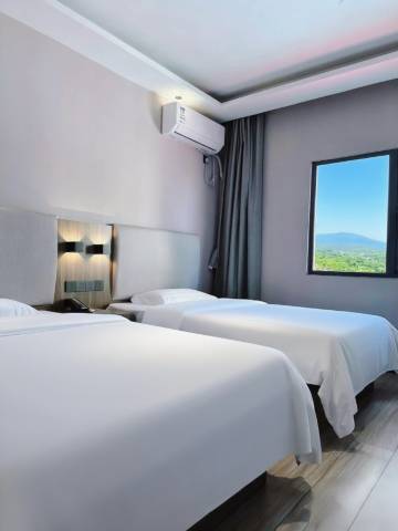 酒店客房规整洁净,设有24小时热水、电热水壶、独立淋浴间、空调等,服务热情。