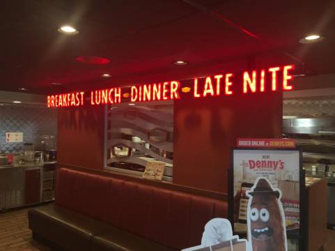 您可以到Denny's享用一顿美餐,或者去酒店的咖啡馆吃些点心。