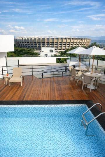 享受室外游泳池等度假设施,或者到露台欣赏美景。此酒店还提供免费 WiFi和宴会厅。
