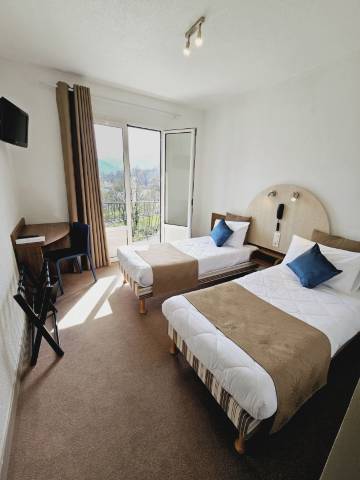 工作人员很友善。酒店有点旧,房间干净舒适,但需要翻新,特别是浴室(非常老旧)。房间的山景很棒,隔音效果也很好。没有空调,只有散热器用于取暖,而且无法关闭,这很不方便,因为房间非常热。早餐比较简单。