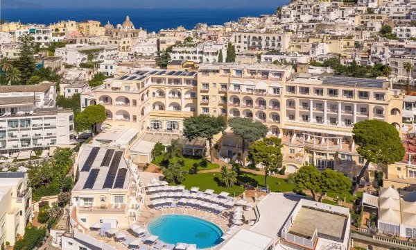 奎希桑纳大酒店坐落于卡普里岛中心地段,距离卡普里小广场只有 3 分钟步行路程,距离别墅圣米歇尔也只有 3 分钟车程。 此豪华酒店距离大码头 1.4 英里(2.3 公里),距离蓝洞 4.7 英里(7.6 公里)。
