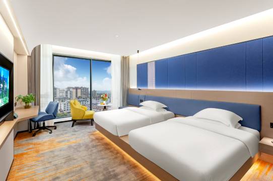 酒店是新装修的,干净卫生,卫生间干湿分离,早餐丰盛,停车方便。晚上还上门送免费的热牛奶,和热鸡汤。就是离市里稍微有一点点远,不过打车也就七八块钱就到了。总体来说挺好的。床垫还可以合并在一起,特别方便带孩子居住。