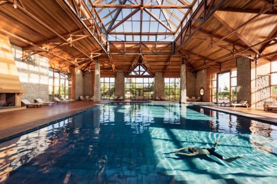 有 71 间特色装修的客房提供私人游泳池和加热地板。选一间,好好款待一下自己。您的卧床备有羽绒被和埃及棉床单。客房设有私人配备家具的阳台。带有卫星频道的 42 英寸液晶电视可满足您的娱乐需求;同时提供免费无线网络,方便您与朋友保持联系。配备淋浴/盆浴组合的私人浴室提供浸泡浴缸和**洗护用品。