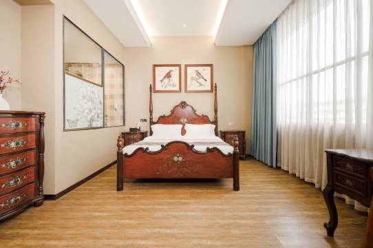 跨年夜来南宁玩,房间都在飙升,挑来挑去就选择了这家,本来看评论没报多大希望,但是今天之后发现出奇的好,前台服务态度很好,我们房间靠里也很安静,房间很干净,浴巾这些都有消毒封尘袋,房间是法式风格很好看很特别,离地铁口很近,出地铁之后一直往前走200米就到了 一路上都有好吃的,地铁里旁边还有个小夜市可以逛,下次要是来南宁还选择这里!