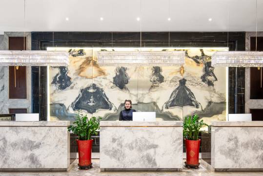 和田丝路迎宾酒店坐落于有着“世界玉都,丝路名城”之称的和田市,尽得地利之便,酒店距十四师师部仅一路之隔,背靠和田“网红夜市”,周边汇集了十四师各职能单位;丝路迎宾酒店是一家集住宿、餐饮、娱乐于一体的综合性高端酒店,外观大气磅礴,内部古朴典雅,豪华舒适,是您到和田出差、旅游的不二选择。