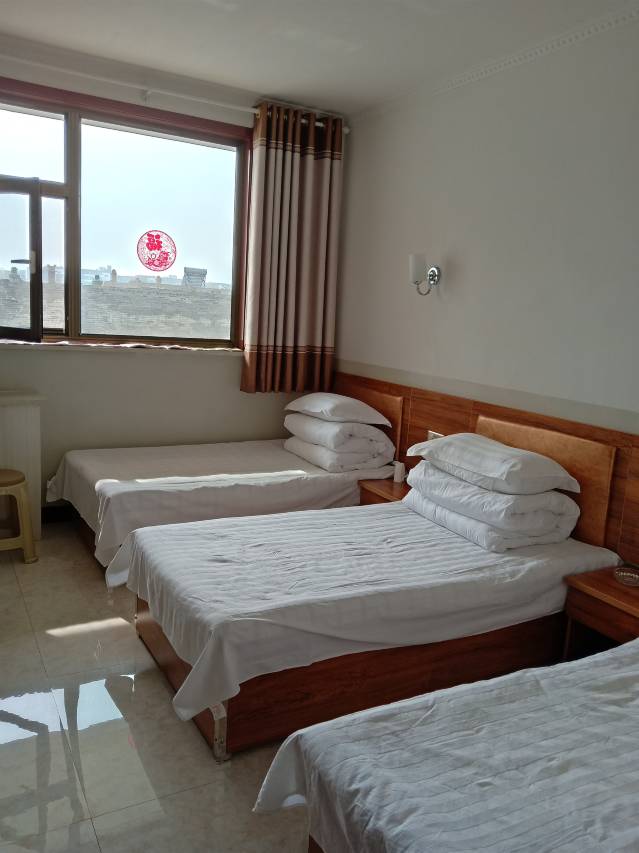一下高速进入牌坊,走五百米右拐即到王家大院老兵客栈,环境优雅,舒适整洁,干净卫生,院内停车,确保车辆安全,欢迎入住,我们将以热情的服务,舒适的房间,期待您的到来。特色美食《炒饼丝》百吃不厌