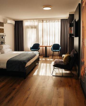 有 80 间空调客房提供意式浓缩咖啡机和平板电视;您定能在旅途中找到家的舒适。提供免费无线网络,方便您与朋友保持联系;数码频道可满足您的娱乐需求。配备淋浴设施的私人浴室提供大花洒淋浴喷头和免费洗浴用品。便利设施包括电话,以及保险箱和书桌。