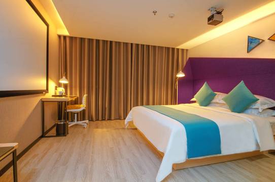 房间舒适干净,隔音效果好,有观影投影,私密性也很不错有机器人送外卖,停车场也有,费用酒店报销。地理位置在市中心离兰花城和南大街都很近,购买和玩耍很方便。前台的服务员也很热情呐