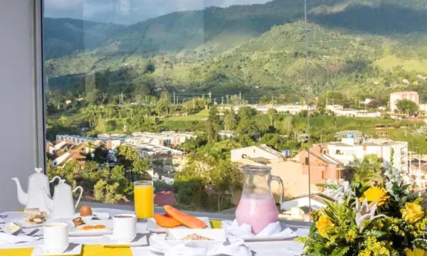 在哥伦比亚,很多酒店不提供洗漱用品,所以这家酒店能提供一套,真的帮了大忙。早餐可以自选菜单,这点很棒。酒店旁边就是购物中心,餐饮选择也很多,出门吃饭很方便,想买回房间吃也很方便。