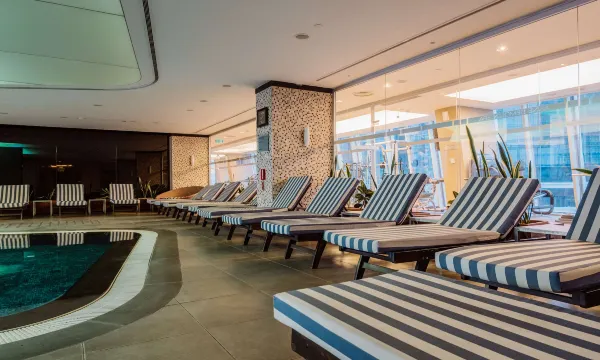 房间宽敞,洗漱用品令人满意,床垫舒适(虽然对于身高180厘米的人来说略短),枕头充足,浴室有地暖,前台服务人员热情周到,早餐也很棒。房间里配备了电热水壶和胶囊咖啡机,还有拉瓦扎茶包和咖啡胶囊,包括无咖啡因的。我们提前两小时办理了入住。酒店有两个游泳池。
