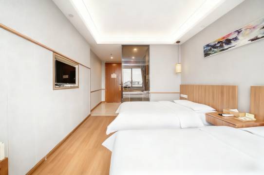 房间设计简约大方,卫生状况极好,地面桌面都一尘不染。床铺柔软舒适,睡眠质量极高,缓解了旅途疲劳。前台叫早服务极其准时,行程安排万无一失。离车站距离极近,步行几分钟即达,极其便利。便捷又舒适的品质酒店,是商务出行的绝佳帮手,以后转车锁定这里。