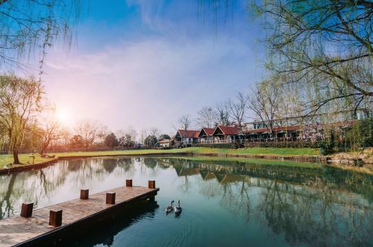 主体为颇有江南古典园林特色原木质中式庭园,其间错落欧洲别墅型尖顶木屋,是集住宿餐饮、音乐歌舞、烧烤品茗、培训开会、休闲娱乐于一体的乡村蓝调旅馆。