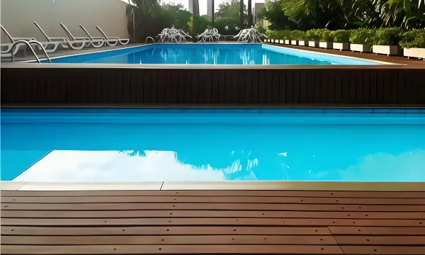 我虽然没用过游泳池,但它总是维护得很好,非常漂亮,尤其是在夜晚灯光璀璨的时候。