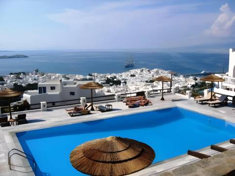 酒店位于可以俯瞰米克诺斯镇的位置,虽然走到镇上需要走一小段路,但距离完全在可接受范围内,不用担心。