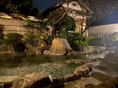 英语散装,日语基本不会,入住基本没有问题!谈谈我住这酒店的感受,我是浅草寺地铁换JR先开始真担心,地铁从浅草寺到品川,在品川坐JR到河津下来走10分钟到这个酒店,本来我包车两日游,司机正好有事第二天来带我去玩,到了这个酒店是没有中文服务的,但是不用担心,给他护照就行,在这儿住的三天两晚,像是把“慢”字刻进了日常里。推门是铺着榻榻米的和室,障子门一拉开,木栈道外就是浮着锦鲤的小池——橘红、金纹的鱼群慢悠悠晃着,伸手能碰着水面的涟漪,连风都裹着草木的潮气。私汤太戳人:木质围合的浴缸挨着小窗,泡汤时能瞥见院儿里的叶子晃,石砖地带着温凉的触感,泡完裹着浴衣坐栈道边喂鱼,连发呆都成了正经事。早餐是免费的,你需要提前一天和前台说你需要早餐!旁边有个鳗鱼店超级推荐,走过去5分钟,需要谷歌导航!
