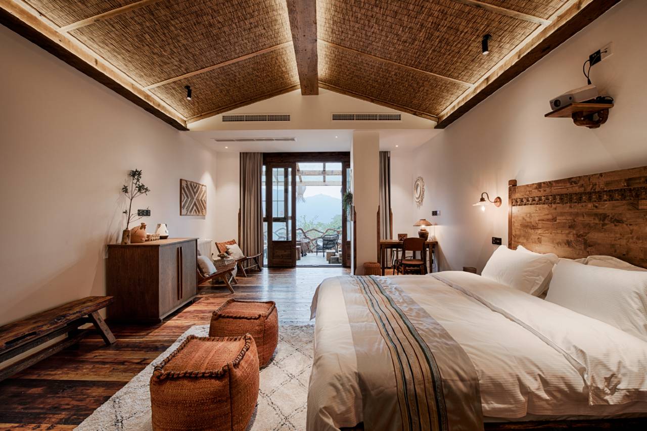 民宿系采用石头,木头,瓦,竹子,树皮等天然材料建造而成的拥有无敌山景与江景的特色院落式精品民宿酒店。酒店共有十个房间,以数字壹到拾命名,分为北欧混搭风、民族风、侘寂风、老上海风、乡村风等五个风格。移步换景,每个房间从入口进庭院,上露台到最后进入房间,无论是整体风格,植物配搭,装修细节,到软装饰品都不尽相同。 虽然酒店建筑材料取自天然,与周边的自然环境融为一体,房间内部设计却充满了品质与细节。例如十间房里有八间装了高清投影,让客人在休闲度假时光尽享视听盛宴;十个房间里有四间采用了老木地板+暖气片的组合,而其余六间装了地暖,让重庆的冬天不再湿冷;房间卫生间的龙头和洁具均采用科勒复古系列,既从品质上得到保证,又与酒店的整体风格高度契合;床垫采用星级丽思卡尔顿同款的丝涟床垫;床品采用希尔顿与洲际酒店同款的羽绒被羽绒枕以及高支棉品,力求让入住的客人有离尘清静,放松安眠的舒适体验。