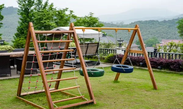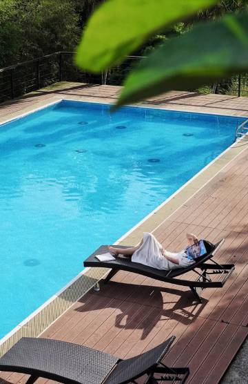 民宿配套设施一应俱全,周围绿化面积600方左右,泳池、温泉、棋牌室、会议室、KTV、台球、秋千、儿童娱乐区、户外烧烤区。是聚会团建的极佳选择。梦里梦见的森林,醒来就应该见它