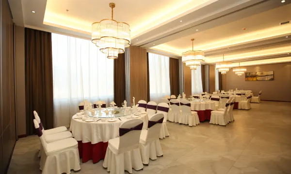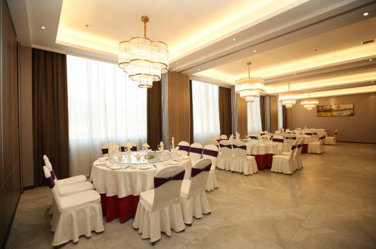 酒店是一所以现代简约为主题的高星级酒店,位于延安市黄蒿洼鑫鑫家园,距延安市着名宝塔山景区约5分钟车程,地理位置优越,交通便利,装潢艺术构造于一体的星级酒店,实为闹中取静、学习、度假团体之选。酒店拥有最专业的婚庆服务团队,私人订制婚礼策划,企业年会策划等。酒店餐饮共分三层。1F宴会大厅。2F豪华包间,可实现独立5包联席的小型宴会。以陕北特色为主的经典自助餐全天营业