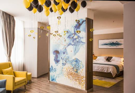 无需奢华,却亲近如家。“栖”酒店是千辰酒店管理责任有限公司旗下高端精品酒店。是乐至少数集高端装修品质、人性化服务于一体的酒店。酒店占地面积约7000平米,配有1000平米专属地下车库。酒店融合了现代北欧装修风格,简单不失大气,低调中彰显奢华。整体设计以“水”作为主题,以行、色、材质穿插于整个设计中一气呵成。呈现在大众面前的,是易学与美学的有机结合,相生相合,现代时尚的元素给入住者带来独特的体验感。酒店拥有各类房间,平均房间面积达到了35平米以上,套房面积更是在50平米左右,高于酒店平均面积30%。