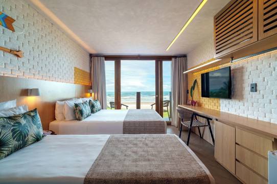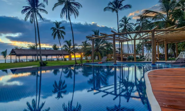 度假村非常漂亮,泳池很棒,还有儿童区和娱乐活动。海滩部分也很美,有巴西炸豆丸子和冰淇淋。我们住的是海景房,一切都很好。不过,我觉得对于带孩子的家庭来说有点危险,因为房间正对着河流,没有任何防护措施,需要特别注意安全。食物还不错,早餐非常好。