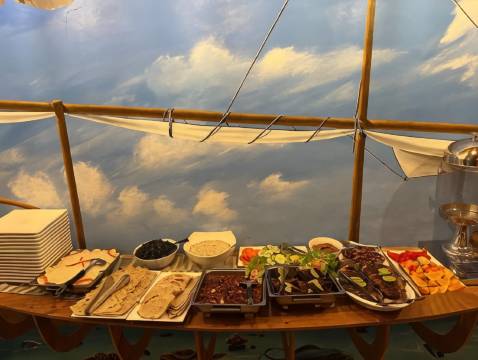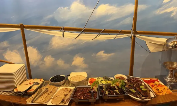您可以到餐厅享用一顿美餐,也可以待在房间里,享受酒店的 24 小时送餐服务。