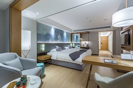 房间很大 也挺干净的 前台小姐姐特别温柔 房间也有每天都打扫卫生 酒店离高铁站很近 开车五分钟就到了 一次非常不错的入住体验