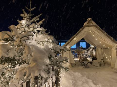 院子的布置是一大亮点,从窗子透出去观赏院子,圣诞氛围满满,很可惜只住了一晚,离开雪谷那天念念不忘。不是托,纯纯由感而发