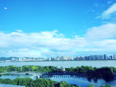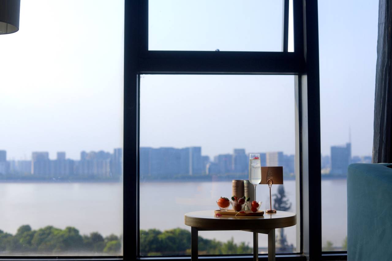 酒店地理位置非常不错,紧邻钱塘江,房间在13层,加上房间的大窗,钱塘江景一览无余。