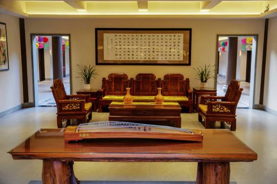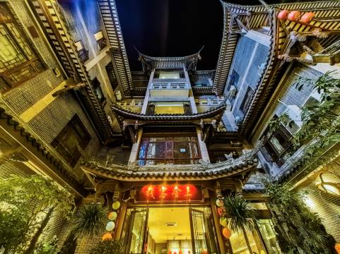客栈位于永宁新区鱼凫古街二号楼,是一家新中式园林庭院文化主题客栈,周围聚集了成熟的商圈,吃、住、行、购物方便之致。客栈占地面积3800平米,拥有三个100平独立庭院,二个会客厅,为宾客提供舒适的休闲会客场所。客栈内共镌刻和陈列倪为公、于德泉等书画家,楹联专家100余幅书画、石刻、对联作品。客栈内拥有套房2间,单间34间,标间33间。每间客房均配备完善的设施,引进铂尊静音门窗、恒洁卫浴等一线品牌,客房布置均为新中式风格,温馨如家。
