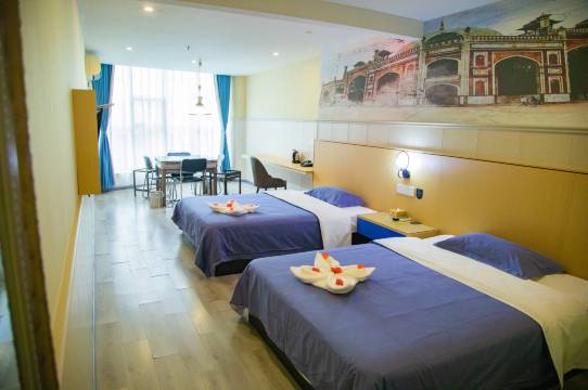 酒店位置挺好找就在马路边,离火车站也近,房间干净整洁,隔音效果不错,前台和客房的服务人员态度很好,有求必应,想要什么东西立马就送过来了哈哈。早上尝了一下酒店的早餐,热干面跟武汉店里的味道一样好吃,酒店性价比挺高,黄梅也是好起来了哈哈