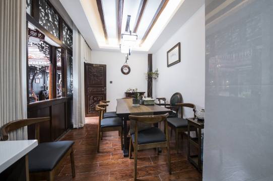 【进士匾】高悬于正堂上,庄严气派,整个院落古色古香。前院照壁脚的石缸及有着120多年历史的柚子树衬映着照壁中央的福字更是向人们诉说着这座古宅的老故事。在保持古建筑风貌的同时,院子的主人还没有忘记给客人带来住下的舒适体验。九牧的卫浴,电动马桶,高级酒店标准的布草,几处茶室放置的古树普洱等茶品及亲子游戏区域等,每一物品主人都精心准备,目的是在给客人带来欣赏古典美的同时,更是给客人带来现代的舒适体验。