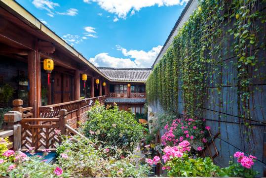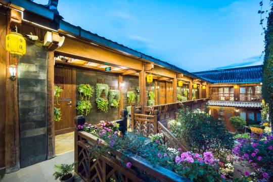 位于丽江古城依古巷,酒店整体设计追求纳西庭院风格,庭院内布满鲜花,复古不失时尚、温馨、浪漫。