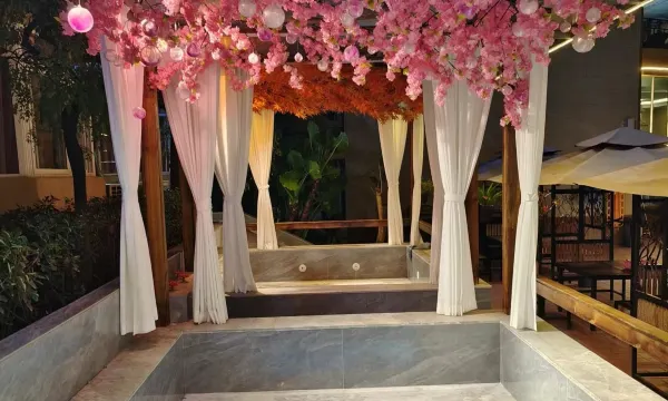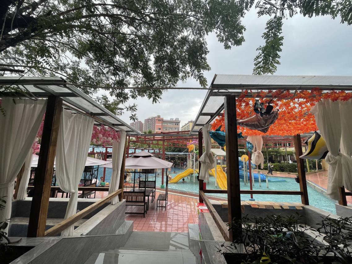 泳池区域面积很大,单独分隔了儿童游戏区,是亲子活动的不错场所。多个功能各有不同的温泉掩映于丰茂的花草灌木丛中,边泡池边欣赏美景、呼吸新鲜空气十分闲适惬意。泡累了还可以去餐厅点选餐饮及时补充能量。