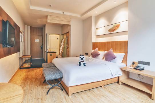 性价比很高的酒店。位置优越就在景区门口,而且前台工作人员超好,我们带着俩孩子定的五百块的亲子房,前台给了我们三大一小的景区门票,和项目票,不想当天下雨丛林探险闭园,第二天试着问前台是否还能进去把项目耍了,结果又送了我们一家人的景区门票,简直不要太划算!打扫卫生的阿姨也很好,我们加要拖鞋、被子、浴巾、临时打扫地上的水,她都很耐心的服务;早餐煮面的师傅也是超级主动,不管哪个顾客往他那里望一眼,他就会主动问要不要煮面条或者米粉。总之很满意,下次有机会来还住这里。