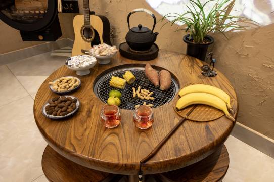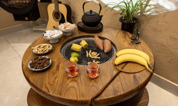 一进门办理入住的时候 看我有小孩 就让我家小孩去门口的鱼池喂鱼玩会 老板会帮忙把行李拿到楼上 提前去帮我们开灯开空调 桌上长长的一桌水果随便吃 让等待的时候也不会无聊 进入房间时 老板会脱鞋进入 又是一个细节 我们订的是榻榻米两张床 如果是有二胎的家庭 榻榻米中间那块也可以睡 小孩子最喜欢榻榻米 很是兴奋 后来和老板聊天中知晓民宿已经开了11年了 但真的保持得非常好 一点看不出11年的痕迹 尤其卫生死角都是干干净净的 老板说都是她自己打扫的 不相信外面的人 而且还会在客人退房后拿紫外灯消杀整个房间 这波操作我真的只有在和平饭店入住时见到过 (还是口罩刚解封时)这还有一次性的浴巾毛巾免费提供