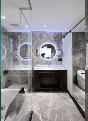 卫生间干湿分离,玻璃擦的干干净净一点水渍都没有。