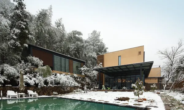 在潜庐,十二个房间,拉开窗帘,满眼是山林风景。