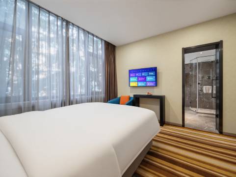 前台的小姐姐不仅漂亮还超温柔,早餐自助的小哥哥也超帅的。在去之前打电话咨询了两次,两位工作人员都非常热情耐心的解答了。入住也非常简单,工作人员提前预留好了房间,我到的时候已经晚上九点多了完全没有耽误一点时间就入住成功了。不仅升级了套房还有早餐优惠。打车啥的也超方便,即使我有轻微洁癖也挑不出什么毛病来。